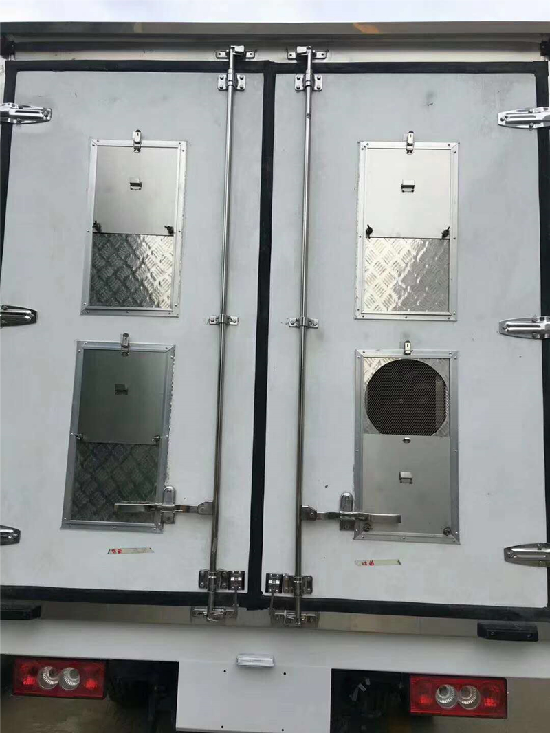 【豬苗車】上裝配置:外玻璃鋼,內(nèi)不銹鋼,兩層液壓升降層板,尾部液壓翻轉(zhuǎn)上豬平臺(tái),層板為不銹鋼骨架鋪鋁花紋板。外部電動(dòng)升降窗,排氣扇,柴油發(fā)電機(jī),暖風(fēng)加熱,喂水系統(tǒng),凈水箱、污水